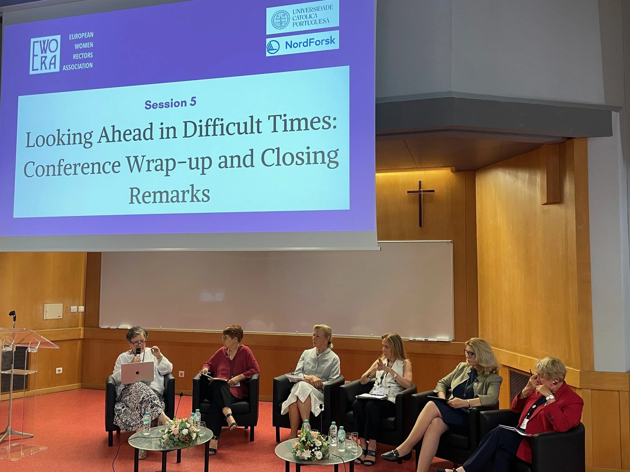 Members (and guests) of the European Woman Rectors Association (EWORA) [1] met in Lisbon on 26-27 June to discuss values-based leadership in academia and how it could serve to strengthen and sustain gender equality [2]. The conference – on the topic “Gender Equality in the Academy is Fragile. Is Values-Led Leadership the Answer?” – was hosted by the Universidade Católica Portuguesa (UCP), whose leader, Prof. Isabel Gil [3], was a strong and encouraging voice throughout the two-day event.